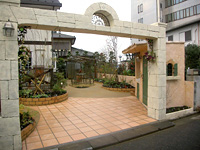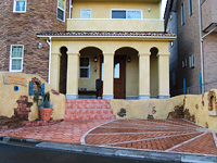 イタリアをイメージしたとってもお洒落なオリジナル外構工事です。 輸入住宅の外観と美しく調和したエクステリアとなりました。
